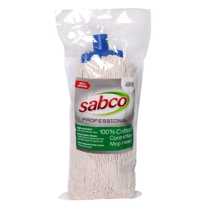 Sabco Cotton White Mop Heads provide effective, high-quality cleaning with excellent water absorption and long-lasting durability for professional maintenance operations