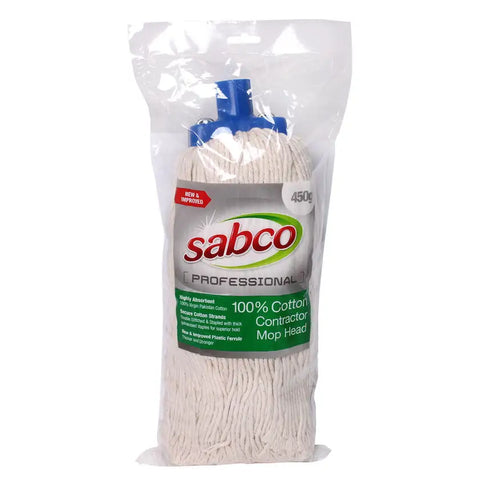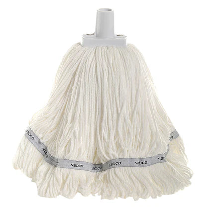 Sabco Cotton White Mop Heads are made from 100% virgin cotton fibres, providing superior absorbency and durability for commercial and industrial cleaning. These mop heads are designed for heavy-duty use in demanding environments such as hospitals, schools, offices, and retail locations. They feature secure, heat-sealed fibres that prevent fraying and prolong the lifespan of the mop, ensuring reliable performance during repetitive cleaning tasks.